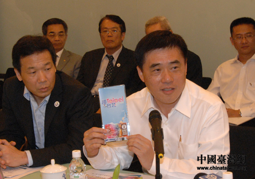 郝龍斌等一行到上海后,在上海市副市長姜平的陪同下,立即驅車前往上海錦江旅游有限公司和上海旅游集散中心,了解上海赴臺個人游的市場需求和發展狀況。