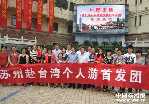 中國臺灣網(wǎng)7月1日蘇州消息 6月28日上午9點,蘇州赴臺個人游首發(fā)團啟動儀式在蘇州會議中心廣場舉行,19名個人游游客快樂啟程。
