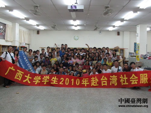 中國臺灣網8月10日桂林消息 2010年桂臺大學生夏令營廣西站將于8月10日開營。來自臺灣大學的25名大學生將分別和廣西大學的30名大學生、廣西柳江高中的45名師生開展署期社會實踐活動。