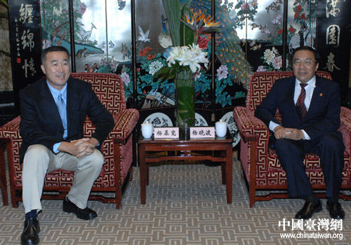 中共上海市委常委楊曉渡會(huì)見出席論壇的臺(tái)灣104人力銀行董事長楊基寬先生。(上海市臺(tái)辦 葛鳳章 攝)