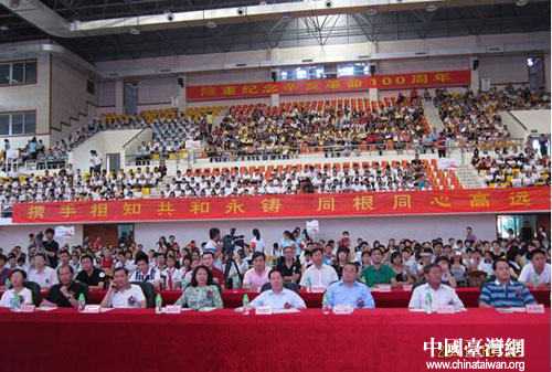 這次“攜手·同心——兩岸學(xué)子共慶百年辛亥”活動(dòng),由市臺(tái)務(wù)局、市教育局主辦,市臺(tái)商協(xié)會(huì)協(xié)辦,中山紀(jì)念中學(xué)承辦。中山市副市長(zhǎng)韓澤生、市臺(tái)務(wù)局局長(zhǎng)黃全歡、市教育局局長(zhǎng)劉傳沛、市臺(tái)商協(xié)會(huì)會(huì)長(zhǎng)李俊德等出席活動(dòng)。當(dāng)天下午3時(shí)整,活動(dòng)在禮炮聲中拉開序幕。首先,同學(xué)們用歌、舞、朗誦、樂器等形式,藝術(shù)地再現(xiàn)辛亥百年的歷史進(jìn)程,展現(xiàn)祖國(guó)大陸在孫中山“富國(guó)強(qiáng)民”思想影響下,經(jīng)濟(jì)社會(huì)取得的偉大成就,憧憬中華民族振興的美好未來。
