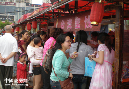 中國臺灣網5月4日遂寧消息 日前,由四川遂寧市臺辦、成都市臺胞投資企業協會共同主辦的“臺灣美食巡回展”在遂寧市體育館廣場拉開帷幕。25家臺灣商戶參展銷售80多種正宗臺灣小吃、特產,讓廣大遂寧市民在家門口就可品嘗正宗臺灣美食,感受寶島風情,豐富“五一”節日生活。