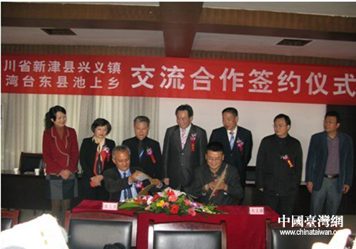 中國臺灣網12月4日成都新津消息 為了更好的加強海峽兩岸交流與合作,構建惠及兩岸有機農業產業發展的新平臺和新機制,日前,成都新津興義鎮與臺灣臺東縣池上鄉舉行了隆重的“締結交流合作鄉鎮”簽約儀式,雙方簽署了《兩岸鎮鄉交流合作協議書》。新津縣委常委、統戰部長黃蓉生,縣政府副縣長劉一陽、羅智敏,相關部門和鎮鄉負責人出席了簽約儀式。