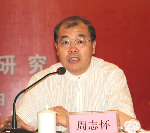 全國臺灣研究會執行副會長兼秘書長周志懷主持研討會。(中國臺灣網 李杰 攝)