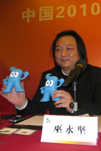 資料圖:臺灣設(shè)計師巫永堅亮相中國二0一0年上海世博會吉祥物揭曉新聞發(fā)布會 中新社發(fā) 裔蕊華 攝