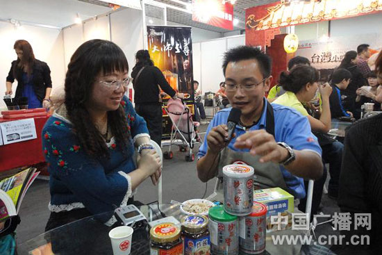 帶著島內家喻戶曉的調味料品牌——“牛頭牌沙茶醬”來闖華北市場的王老板說,這種沙茶醬的創始人是一位去臺老兵,因為擺面攤需要拌面醬,就想起家鄉沙爹醬的調制方法,結果無心插柳,醬賣得比面還好!如今,人們吃臺式小火鍋或海鮮撈都離不開沙茶醬,公司也早已看好華北市場愛吃火鍋的人群,希望通過參加各種展會,拓展商機!來自臺南的林沛瑜夫婦在接受記者采訪時也表示,“此番與北京消費者‘親密接觸’,深刻感受到大陸民眾對臺灣特產的熱情及強大的購買力!已有打算在北京創業發展了。”