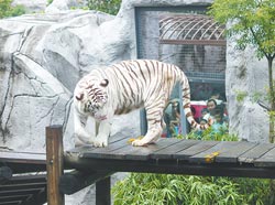 高雄壽山動(dòng)物園兩只白老虎“昭海”與“歡樂(lè)”,17日首度正式亮相。圖片來(lái)源:臺(tái)灣《中國(guó)時(shí)報(bào)》