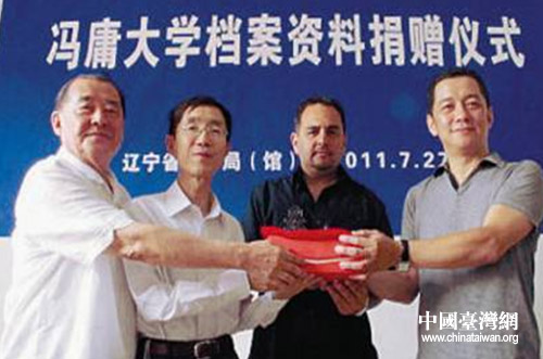 中國臺灣網7月29日沈陽消息 7月27日,馮庸外甥張文琦、長孫馮祖華夫婦以及外孫李絲絲等一行14人分別自臺灣、美國等地齊聚沈陽,將珍存了84年的馮庸大學兩枚校印贈予遼寧省檔案館。