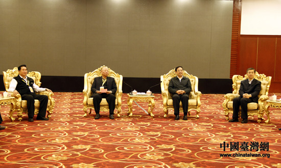 4月10日下午,河南省政協(xié)主席葉冬松在鄭州會見了參加癸巳年黃帝故里拜祖大典的臺灣統(tǒng)派人士和退役將領(lǐng)參訪團(tuán)。(中國臺灣網(wǎng) 李丹 攝)