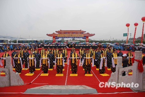 9月27日,湖北當陽關陵舉行盛大的關公秋祭大典,來自海峽兩岸的關廟代表、關氏宗親和關公信眾以及當地民眾共計萬余人祭拜關公。中新社發 郭曉瑩 攝
