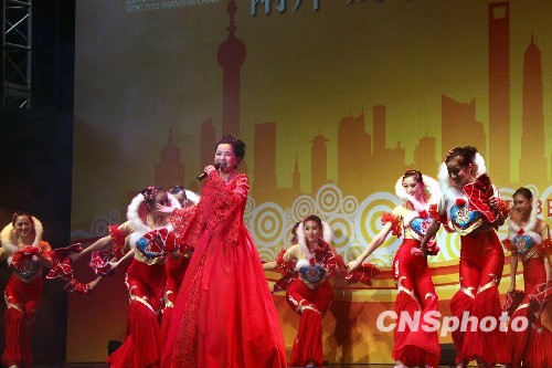 10月16日晚,“相約上!2010年上海世界博覽會”圖片展在臺北市最繁華的信義新天地“香堤大道”揭幕,臺北市長郝龍斌、臺北世貿中心董事長王志剛等剪彩。作為兩岸城市藝術節臺北上海文化周的一項重要內容,該展覽以靜態的圖片展示輔之以熱鬧多樣的廣場綜藝演出,吸引不少臺北市民駐足觀看,上海世博會走進臺北的推介勢頭良好。中新社發 黃少華 攝
