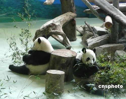 贈臺大熊貓“團團”和“圓圓”資料圖。 中新社發 路梅 攝