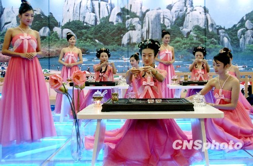 11月16日,第三屆海峽兩岸茶業博覽會上的茶藝表演。當日,第三屆海峽兩岸茶業博覽會在福建寧德市開幕,來自海峽兩岸的茶商、茶業專家學者、全國各地參展商以及美國、加拿大等國來賓近萬人聚首寧德,共同推動茶產業交流合作。中新社發 王東明 攝