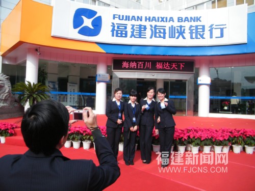 12月7日,福州市商業銀行正式更名為福建海峽銀行,這是大陸首家冠名“海峽”字眼的銀行,將進一步加強與臺灣金融機構的交流合作,積極實現兩岸金融業務合作的先行先試。圖為該行工作人員在剛剛揭牌后的福建海峽銀行總行大樓前留影。(詹托榮 攝)