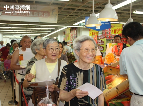 適逢端午佳節,大批市民排隊等候品嘗愛文芒果。(中國臺灣網 李學斌 攝)