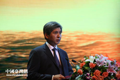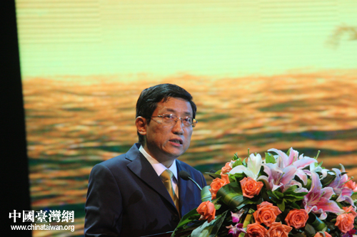 “第三屆海峽論壇·閩臺(tái)佛教文化交流活動(dòng)周”9日晚間在福州開(kāi)幕,圖為福建省副省長(zhǎng)洪捷序在開(kāi)幕式致辭。(中國(guó)臺(tái)灣網(wǎng) 楊麗 攝)