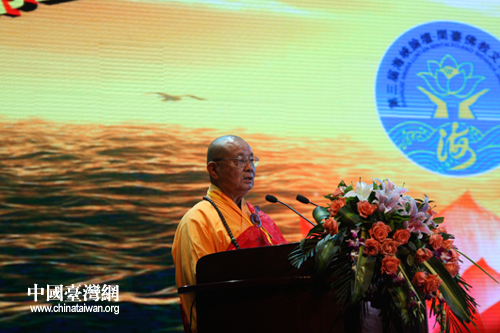 臺(tái)灣“中國(guó)佛教協(xié)會(huì)”理事長(zhǎng)圓宗長(zhǎng)老表示,兩岸佛教界同根、同源、法緣一脈,他期待兩岸佛教界“生生世世不遠(yuǎn)離”的話(huà)語(yǔ),激起了全場(chǎng)的熱烈掌聲。(中國(guó)臺(tái)灣網(wǎng) 楊麗 攝)