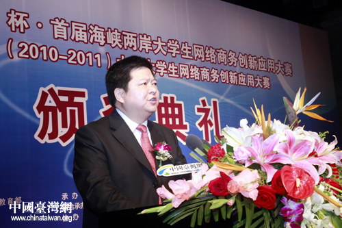 7月28日,“首屆海峽兩岸大學生網絡商務創新應用大賽”大陸賽區頒獎典禮在京舉行。國臺辦主任助理龍明彪出席頒獎典禮并致辭。(中國臺灣網 劉海偉 攝)