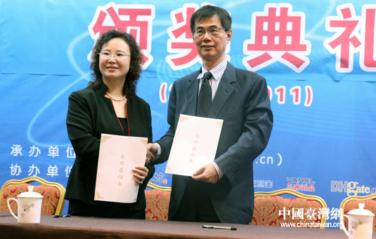 在活動(dòng)現(xiàn)場(chǎng),中國(guó)臺(tái)灣網(wǎng)總經(jīng)理總編輯劉曉輝與臺(tái)灣亞洲大學(xué)副校長(zhǎng)鄧成連教授簽訂了2012海峽兩岸大學(xué)生網(wǎng)絡(luò)商務(wù)創(chuàng)新應(yīng)用大賽合作意向書。該意向書旨在促進(jìn)兩岸大學(xué)生交流與互相了解,深化兩岸青年對(duì)大陸與臺(tái)灣商業(yè)環(huán)境、文化環(huán)境的認(rèn)識(shí),把握“海峽兩岸經(jīng)濟(jì)合作框架協(xié)議”(ECFA)簽署后為兩岸帶來(lái)的機(jī)遇與挑戰(zhàn),推動(dòng)兩岸互聯(lián)網(wǎng)及其商務(wù)應(yīng)用(電子商務(wù))的發(fā)展與合作,并促進(jìn)兩岸大學(xué)生的社會(huì)實(shí)踐與商業(yè)創(chuàng)新實(shí)踐,提升職業(yè)能力與就業(yè)力。(記者 李丹)
