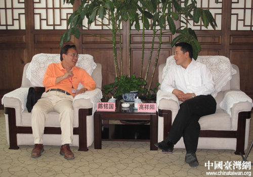 北京海淀區(qū)委常委、副區(qū)長(zhǎng)高祥陽會(huì)見臺(tái)北市北投區(qū)副區(qū)長(zhǎng)陳銘國(guó)(圖片來源:北京海淀區(qū)臺(tái)辦)