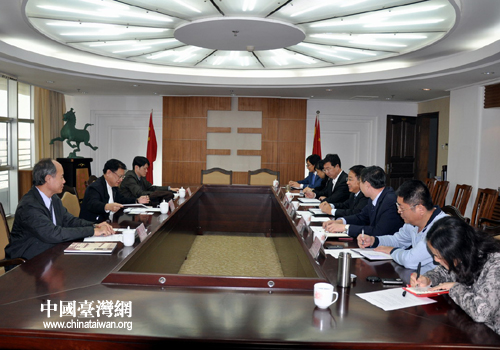 青島理工大學(xué)校領(lǐng)導(dǎo)與臺(tái)灣高苑科技大學(xué)訪問團(tuán)座談交流。(圖片來源:山東省臺(tái)辦)