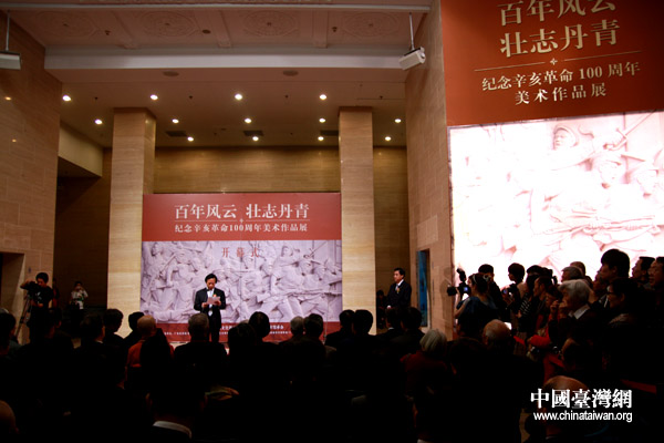 中國臺灣網10月8日北京消息 為隆重紀念辛亥革命100周年,“百年風云 壯志丹青——紀念辛亥革命100周年美術作品展覽”8日下午在中國美術館開幕。近300件作品薈萃一堂,展示了兩岸四地及海內外美術界紀念辛亥百年、緬懷革命先驅精神的美術創作風貌。