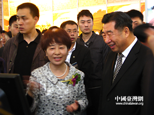 農業部信息中心副主任吳秀媛在向回良玉副總理介紹農交會網絡現場直播的情況。(中國臺灣網 馬迪 攝)
