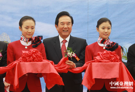 全國政協(xié)常委、港澳臺僑委員會主任、海峽兩岸關(guān)系協(xié)會會長陳云林為通航儀式剪彩。(中國臺灣網(wǎng) 劉海偉 攝)