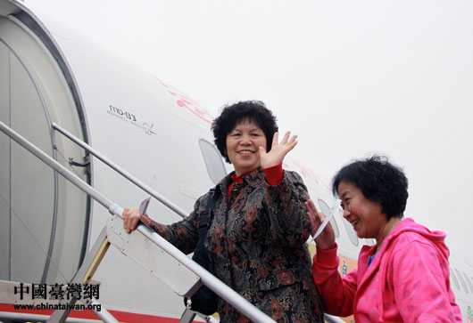 搭乘遠東航空首航的大陸游客。(中國臺灣網(wǎng) 劉海偉 攝)