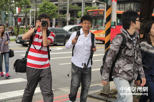 曾經參加過中國宋慶齡基金會組織的參訪大陸活動的臺灣學生們帶領自己的伙伴在臺北市進行“走入臺灣,體驗臺灣”的參觀游覽。(中國臺灣網 徐維彬 攝)