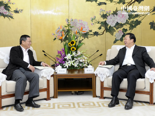 中共四川省委常委、成都市委書記黃新初會(huì)見臺灣緯創(chuàng)集團(tuán)董事長林憲銘。(圖片來源:四川省臺辦)