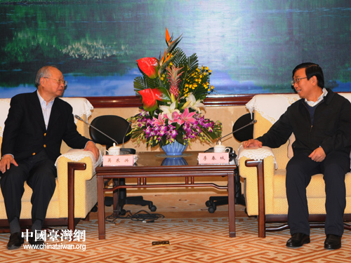 中國臺灣網12月22日成都消息 日前,中共四川省委副書記李春城在成都會見了來四川參加第七屆巴蜀文化精品展文物裝箱啟運活動的臺灣新光三越百貨股份有限公司董事長吳東興一行。