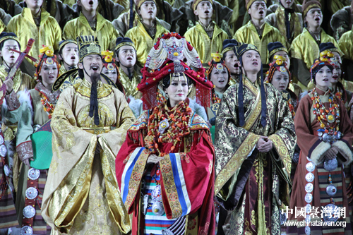 中國臺灣網10月11日北京消息 10日下午,大型史詩音樂劇《文成公主》在國家大劇院首演。男女主角文成公主和松贊干布由著名青年歌唱家譚晶和藏族歌手四郎貢布擔綱。