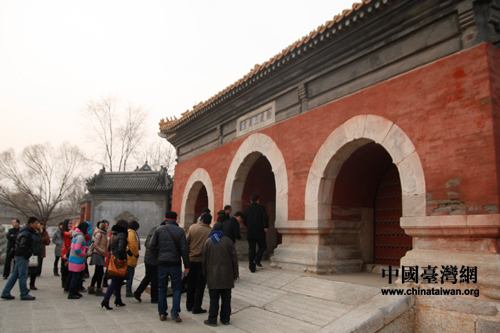 網(wǎng)媒記者們步入涿州三義宮。(中國(guó)臺(tái)灣網(wǎng) 焦源源 攝)