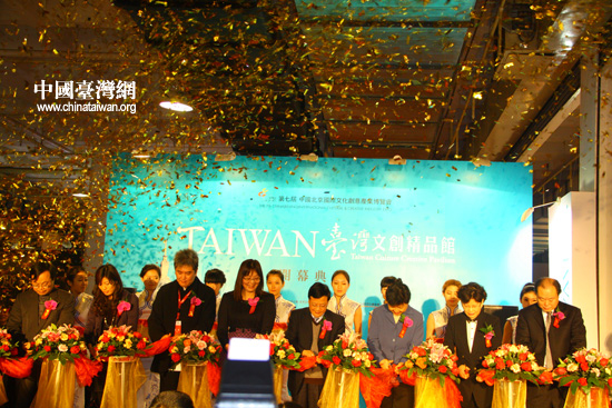 第七屆北京文博會“臺灣文創精品館”20日正式開館展出,圖為開幕典禮剪彩現場。(中國臺灣網 房琳琳 攝)