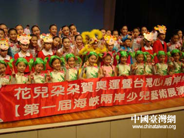 中國臺灣網2月24日消息 “花兒朵朵·賀奧運暨臺灣心·兩岸情第一屆海峽兩岸少兒藝術展演活動”2月2日在臺灣基隆市文化中心演藝廳隆重舉行。