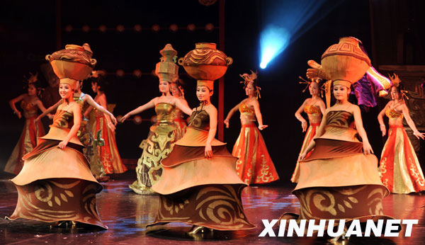 當晚,由洛陽歌舞劇團主演的大型樂舞《河洛風》在臺北上演。該劇傳統與現代結合,全新演繹了中原文化歷史,為臺北觀眾奉上一場場面宏大、具有濃郁地域特色的樂舞盛會。新華社發(吳景騰 攝)