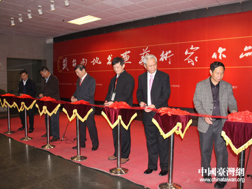 中國臺灣網10月26日貴陽消息 10月25日上午,貴陽市美術館前鮮花簇擁,熱鬧非常,“筑臺兩地書畫藝術交流展”在筑隆重開幕。貴州省臺辦副主任韓支前,省文化廳副廳長、省書法家協會名譽主席鄧健,貴陽市政協副主席夏剛等有關領導出席開幕式并參觀展覽。