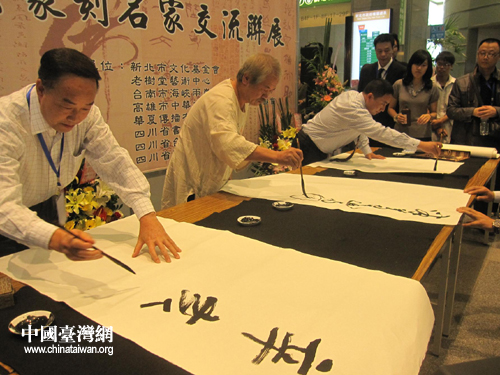 中國臺灣網11月3日成都消息 日前,由四川省臺灣同胞聯誼會、四川省書法家協會主辦,四川省巴蜀音像制作中心、藝術影像網和臺灣高雄市中華文化經貿交流發展協會承辦的“辛亥百年——海峽兩岸書畫篆刻名家交流聯展”在臺灣臺北、高雄兩地隆重舉行。四川省臺聯會長劉琪、省書協主席何應輝率四川書法篆刻名家一行24人,攜90幅精品參加展出,并進行文化交流。