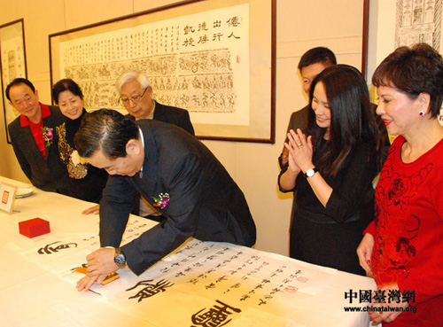 兩位書法家向臺灣省花蓮縣秀林鄉捐贈人民幣300萬元籌建“愛心圖書館”。 (中國臺灣網 劉瑩 攝)