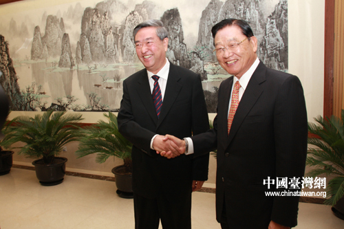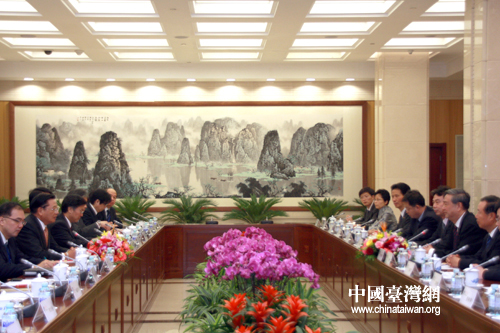 10月29日,臺(tái)灣;鶗(huì)董事長(zhǎng)江丙坤率領(lǐng)的海基會(huì)新聞交流團(tuán)一行訪問(wèn)新華社。這是新華社社長(zhǎng)李從軍會(huì)見(jiàn)江丙坤一行。(中國(guó)臺(tái)灣網(wǎng) 田云鵬 攝)