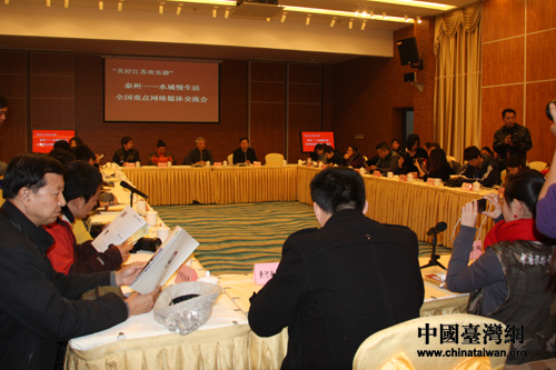 泰州市旅游局與參與采風的中國重點網絡媒體進行了互動交流。(中國臺灣網 樊玉嬌 攝)