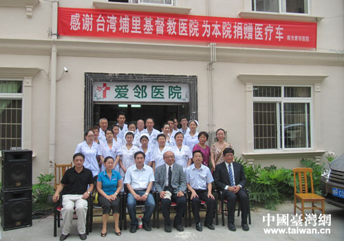 臺灣埔里基督教醫院院長陳恒常先生在捐贈儀式上致辭時說,雅安市蘆山縣發生7.0級地震后,南充愛鄰醫院數次帶領醫務人員,帶著醫療物資遠赴雅安對地震中受傷的災民進行救治,奉獻愛心,我們非常感動。針對當前愛鄰醫院缺少正式醫療救護用車、醫療急救力量不足的情況,向愛鄰醫院捐贈一臺醫療車,希望愛鄰醫院的醫療服務能夠做得更好,傳播愛心,促進兩岸心與心的交流。