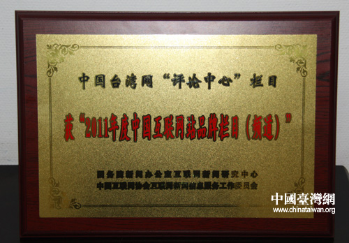 2012年2月21日對中國臺灣網評論中心來說是個好日子,這一天,評論中心喜獲“2011年度中國互聯網站品牌欄目(頻道)”。在此,中國臺灣網評論中心全體編輯同仁,向一直以來關心支持我們的兩岸網友表示誠摯謝意。是你們的厚愛,讓評論頻道從此次參評的184個欄目或頻道中脫穎而出,驕傲同樣屬于你們!