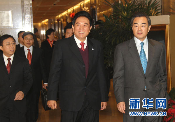 12月20日,海協(xié)會(huì)會(huì)長(zhǎng)陳云林率海協(xié)會(huì)協(xié)商代表團(tuán)離京赴臺(tái),參加21日在臺(tái)北舉行的兩會(huì)領(lǐng)導(dǎo)人第六次會(huì)談。中共中央臺(tái)辦、國(guó)務(wù)院臺(tái)辦主任王毅在北京首都國(guó)際機(jī)場(chǎng)為陳云林送行。新華社記者汪永基攝
