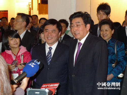 郭金龍與郝龍斌共同接受媒體采訪(郭寧 攝)
