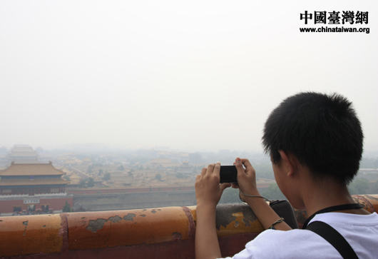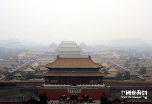 在景山公園高處俯瞰故宮,可以看到北京中軸線。(中國(guó)臺(tái)灣網(wǎng) 黃艷艷 攝)