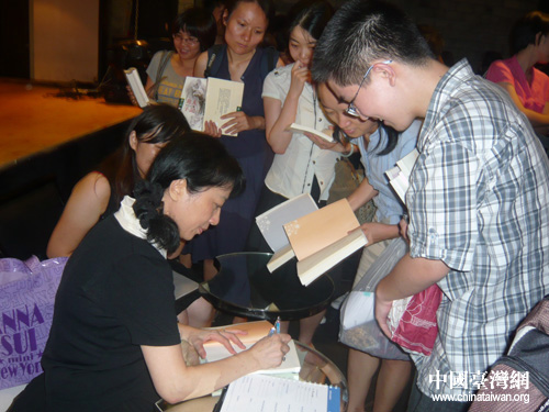 當晚講座結束后,現場還舉行了朱天文作品簽售活動。據悉,8月14日下午,朱天文此行的第二場講座“閱讀,使我們輕盈”將結合2010年上海書展,在上海展覽中心舉行。隨后,另外兩場講座“從廢墟到花園”、“我對文學的黃金誓言”將移師北京舉辦。 (中國臺灣網上海市臺辦鄧一飛)