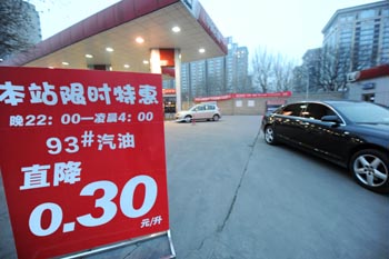 不久前,北京市崇文門附近一家中石化加油站推出限時特惠服務,93#汽油每升油價直降0.3元。記者 金良快 攝