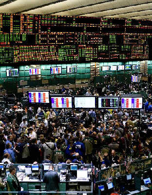 1月2日,工作人員在紐約商品交易所工作。受到投資者擔心原油供應緊張以及美元貶值等因素影響,當日國際原油期貨價格在歷史上首度突破每桶100美元大關。國際油價在2008年第一個交易日大幅上漲。到美國東部時間2日中午12點06分左右,紐約商品交易所2月份交貨的輕質原油期貨價格在電子交易中達到每桶100美元,這一價格刷新了2007年創出的每桶99.29美元的國際原油期貨盤中最高記錄。新華社發